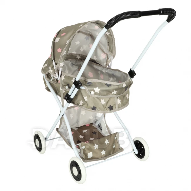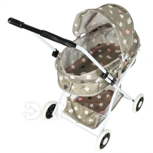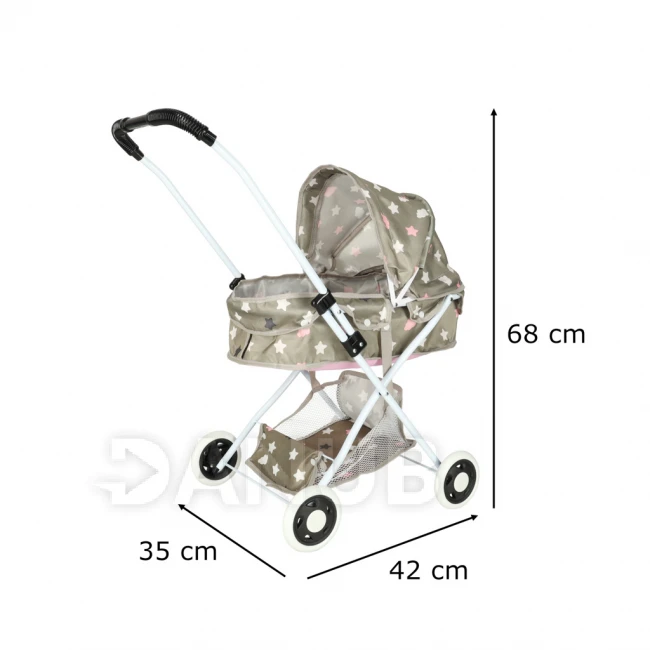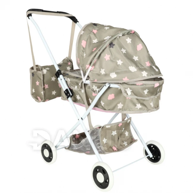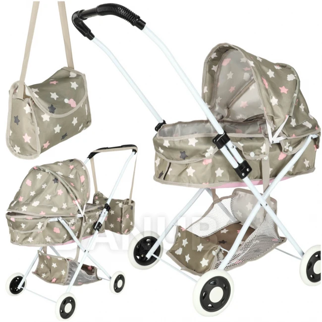 Mély játék babakocsi + táska - bézs-szürke csillagokkal