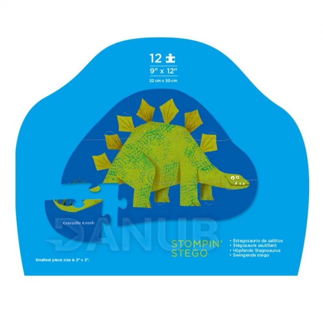 A Crocodile Creek 12 darabos mini puzzle segítségével már egészen kicsi korban elkezdheted a dinoszauruszok megismerését. Rakj össze egy 9 méteres Stegosaurust gyermeked szobájának nyugalmában, a vonaton, a repülőn vagy az autóban. A színes, atipikus formájú kép összerakva 23 x 30,5 cm-es. Kartondobozba csomagolva, ami praktikus például utazáskor vagy látogatáskor. A Crocodile Creek termékek megfelelnek az összes vonatkozó biztonsági szabványnak.