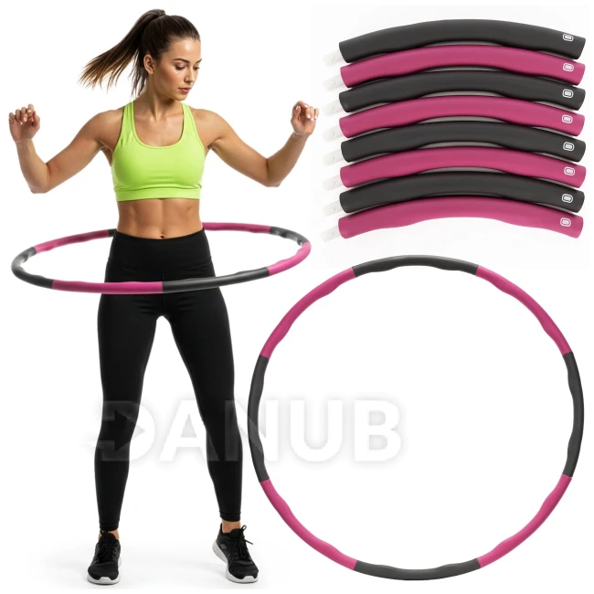 NBR habbal bélelt hula hoop, 88 cm átmérőjű, összecsukható, szürke‑rózsaszín