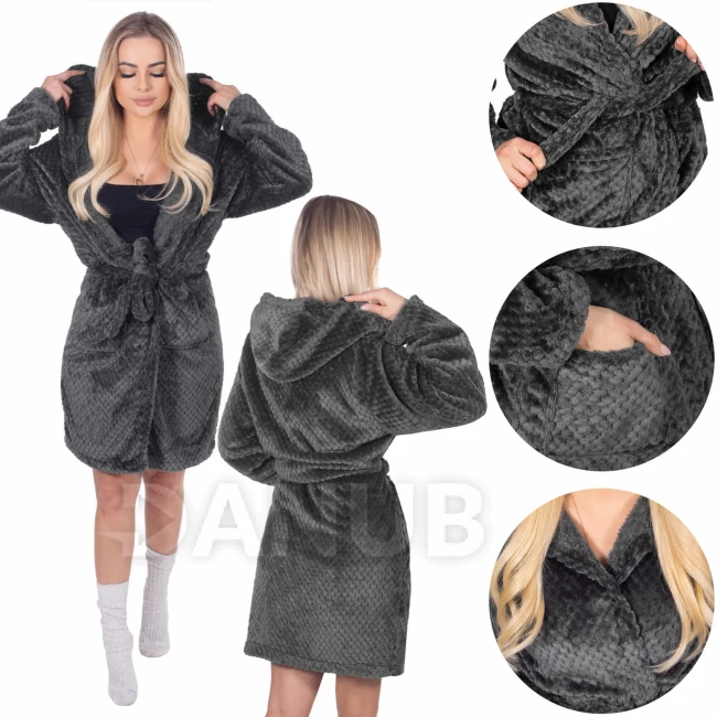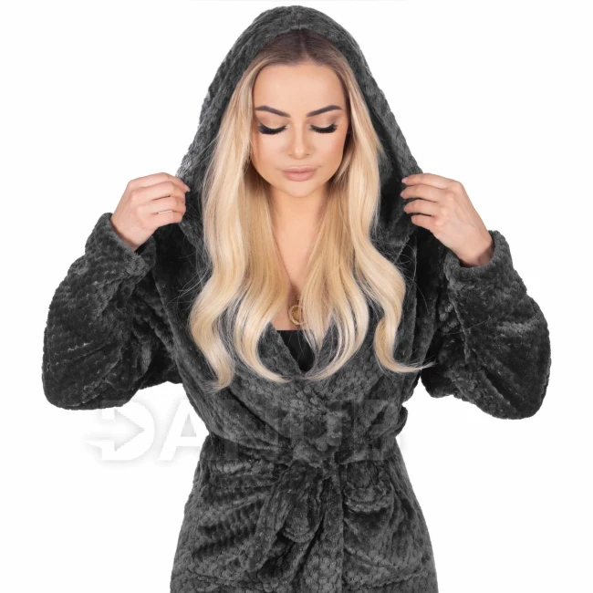 Női plüss WARM köntös kapucnival - L/XL - sötétszürke