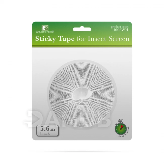 Öntapadó csíkkal ellátott, egyszerűen felhelyezhető szúnyogháló rögzítő szalag.