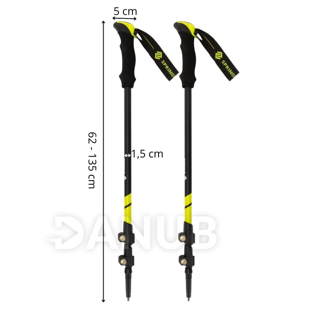 - A bot két teleszkópos szegmensből áll, amelyek hossza állítható és gombokkal rögzíthető