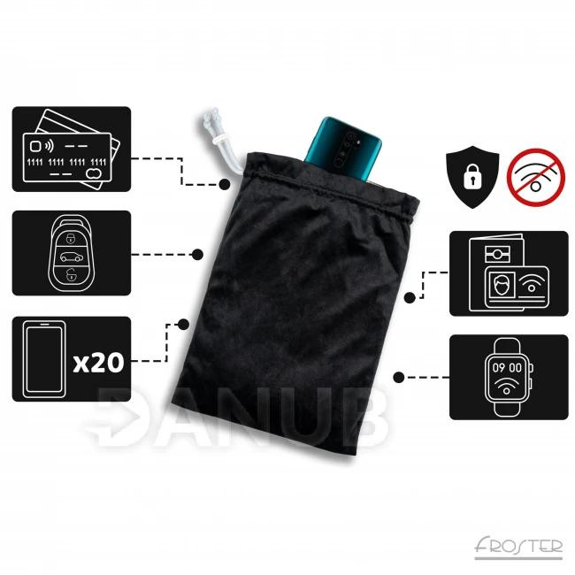 Jelblokkoló táska, amelybe több telefon vagy egyéb eszköz is elfér.