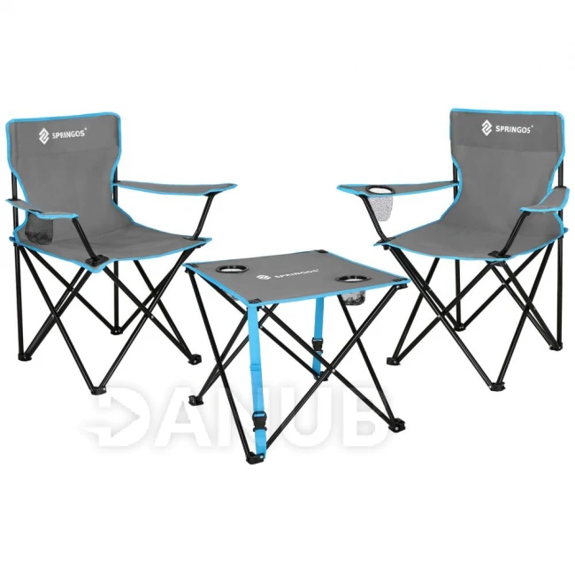 Összecsukható kemping szett: asztal és 2 szék háttámlával