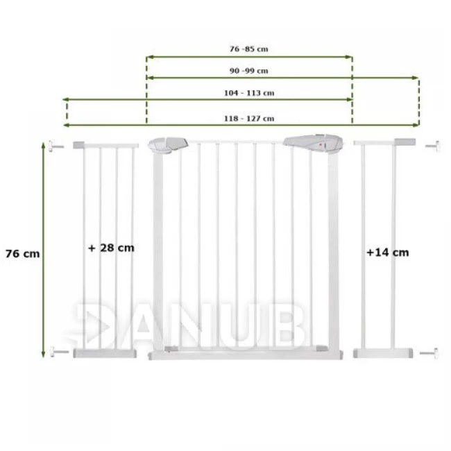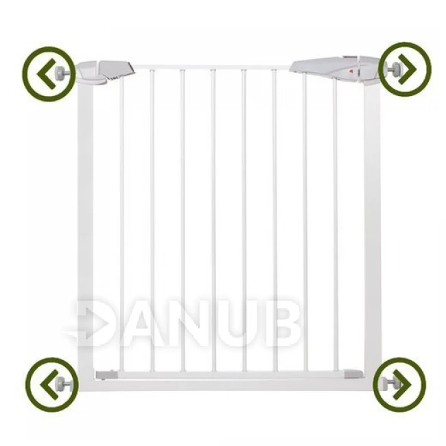 A szilárd biztonsági korlát gyermekek, illetve kis és közepes méretű állatok számára egy olyan termék, amely növeli a háztartások biztonságát. A kapu elkülönítheti a ház bizonyos területeit, amelyek veszélyesek gyermekeinkre. Védi a lépcsőket vagy ajtókat a gyermekek felügyelet nélküli belépésétől. A kapu speciális csavarokkal rögzíthető, ami rendkívül egyszerűvé és gyorsá teszi az összeszerelést és a szétszerelést. Nem igényel fúrást és nem hagy nyomot. A beállítás lehetővé teszi az ajtó 76–113 cm széles ajtókeretek közé szerelését.