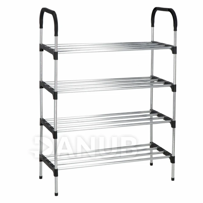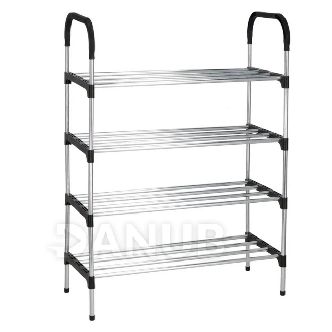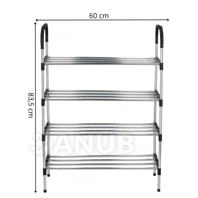 Cipőtartó állvány - 4 polc - fekete + ezüst keret