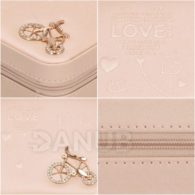 - Díszítés: rosegold kerékpár formájú minta cirkón kövekkel kirakva.