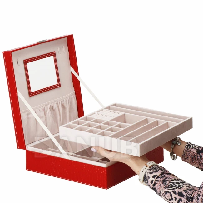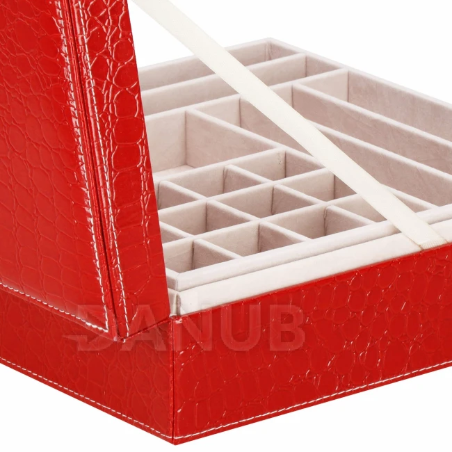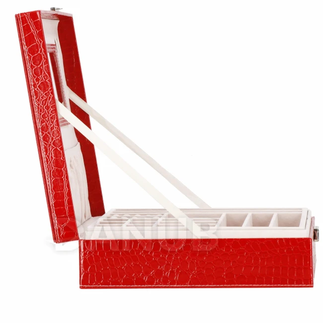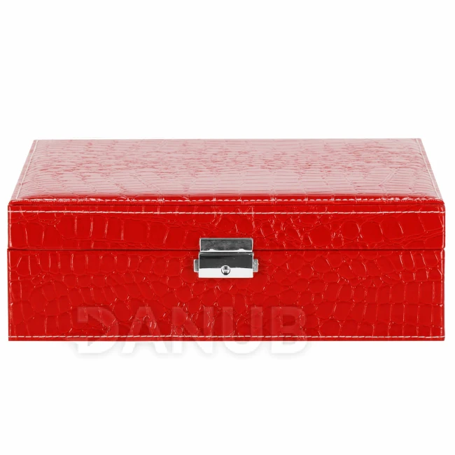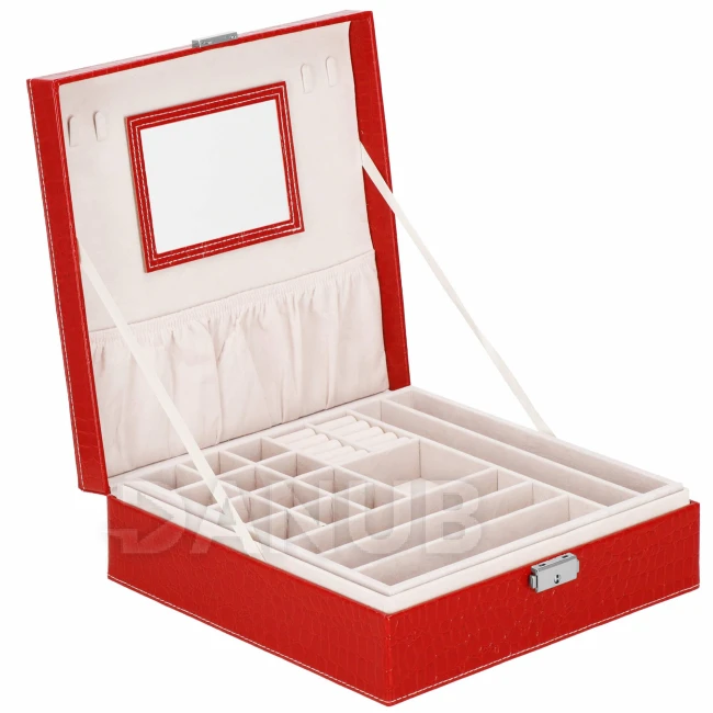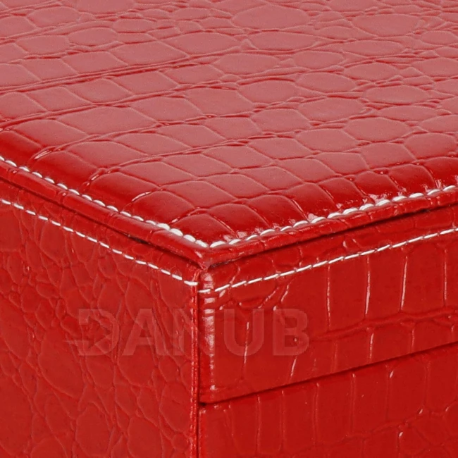 Ékszerdoboz rekeszekkel - 26x26x8,5 cm - piros öko-bőr