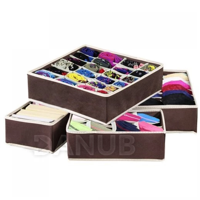 SPRINGOS Fehérnemű rendszerező - készlet 4 db - barna