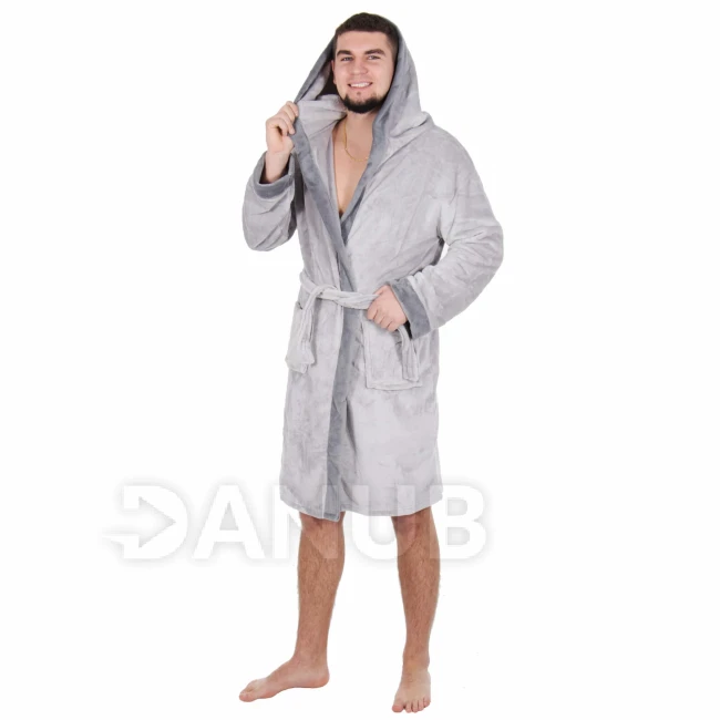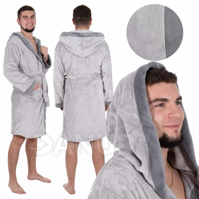 Férfi plüss fürdőköpeny kapucnival – L/XL – szürke