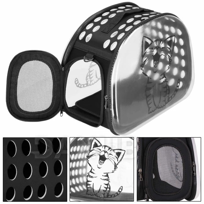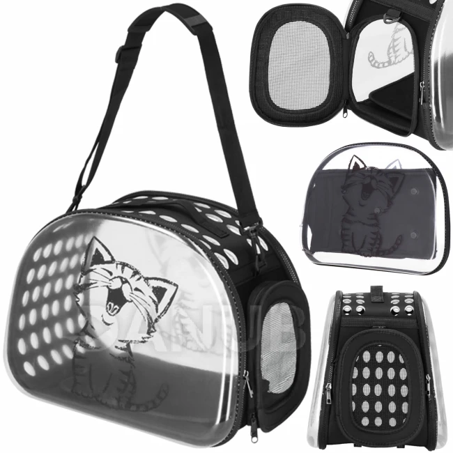 Hordozó macskáknak, nyulaknak és kutyáknak, 10 kg-ig - 42x26x32 cm - M méret - átlátszó
