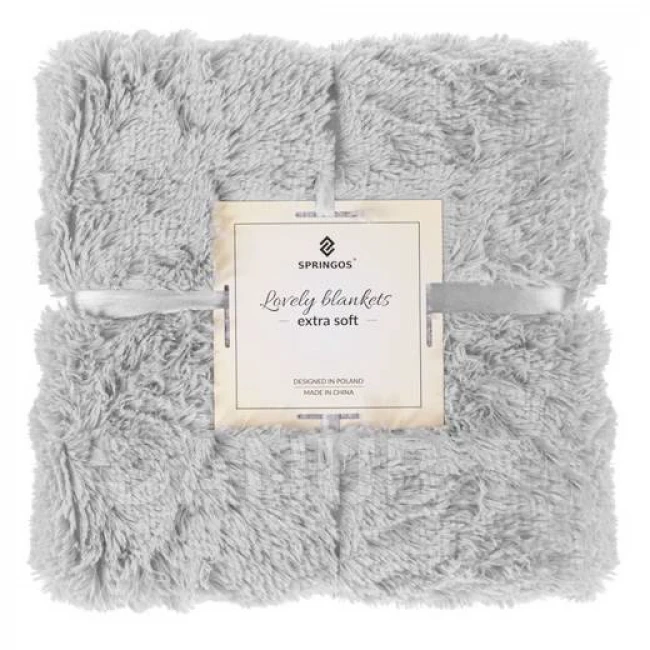 SPRINGOS Kétoldalas gyapjútakaró 200x220cm - világosszürke