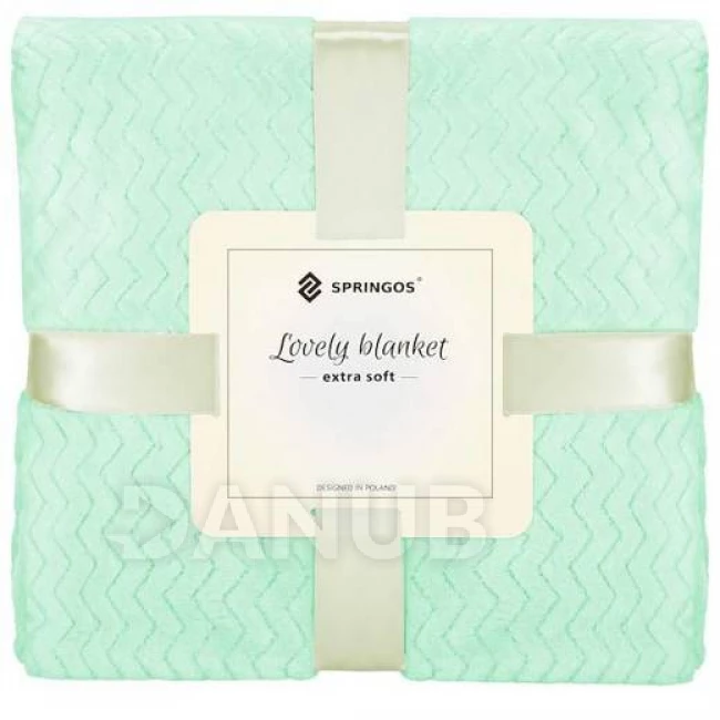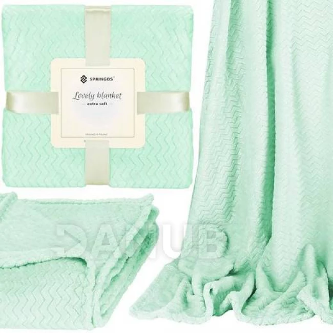 SPRINGOS Kétoldalas plüss takaró - 200x220cm - cikcakk - világoszöld