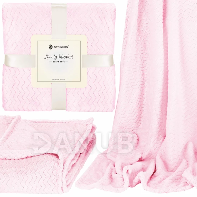 Kétoldalú plüss takaró 70x160cm - cikcakk – világos rózsaszín