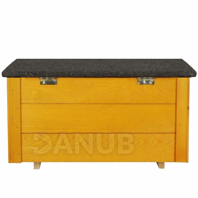 - A tető két zsanérral van rögzítve, kívülről nyitható, és a tető felemelhető.