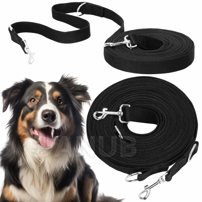 Kutyakiképző póráz - 10 m kötél 15 kg-ig - fekete