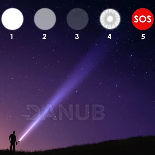 - Lehetőség a zseblámpa USB-kábellel történő töltésére - az ON/OFF LED pirosan világít, így látható a töltöttségi állapot
