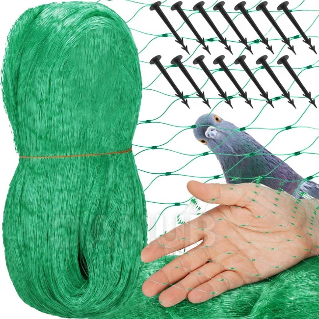 Madarak elleni védőháló rögzítőcsapokkal (14db) - 8x14 m - zöld