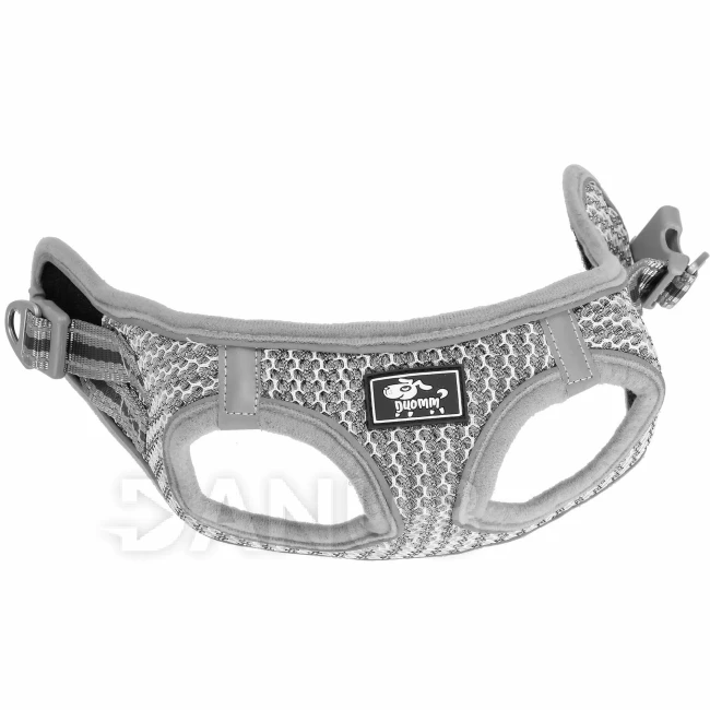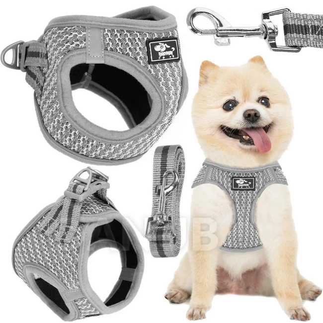 Nyomásmentes hám kutyáknak, macskáknak L 14-20 kg-ig + póráz 150 cm szürke