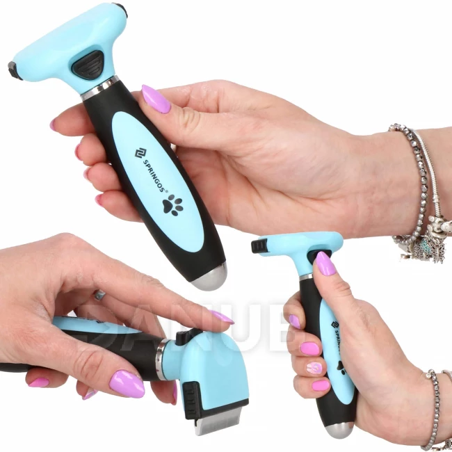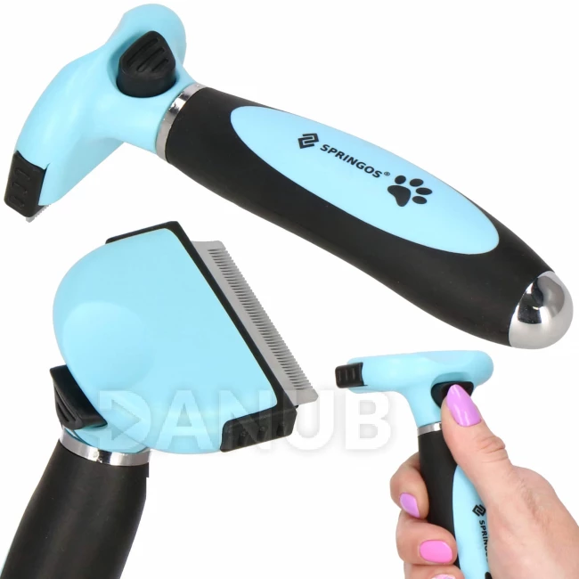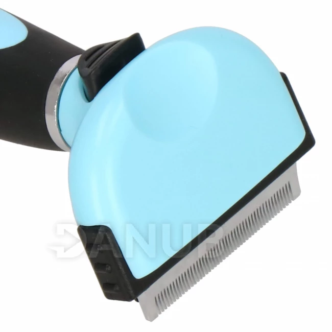 Az állat szőrének gondozása nagyon fontos szerepet játszik a háziállatok ápolásában. A háziállatok számára készült különféle kiegészítők közé tartozik egy speciális kefe a szőrzet fésüléséhez. A tisztítókefe a legjobb eszköz az aljszőrzet és az elhalt szőr eltávolítására. A kefe pengéit úgy tervezték, hogy gyengéden és biztonságosan távolítsa el az aljszőrzetet anélkül, hogy megsértené a kutya bőrét. Kényelmes használatban segít az ergonomikus nyél, a kefe tisztítása pedig nagyon egyszerű az öntisztító mechanizmusnak köszönhetően. Csak nyomja meg a fogantyún lévő gombot, hogy a szőrszálak kijöjjenek pengéből. Kefénk határozottan a leghatékonyabb eszköz a hagyományos fésűkkel és kefékkel szemben.