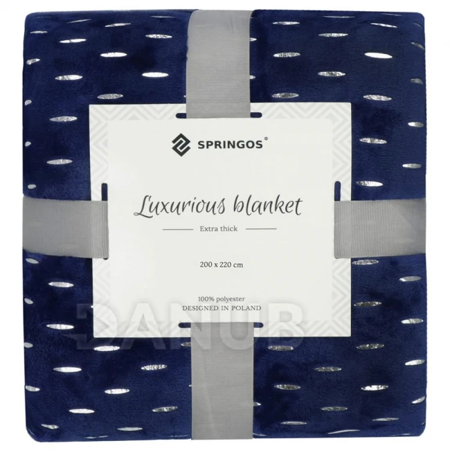 Plüss takaró LUX - 200x220cm - sötétkék + ezüst részletek
