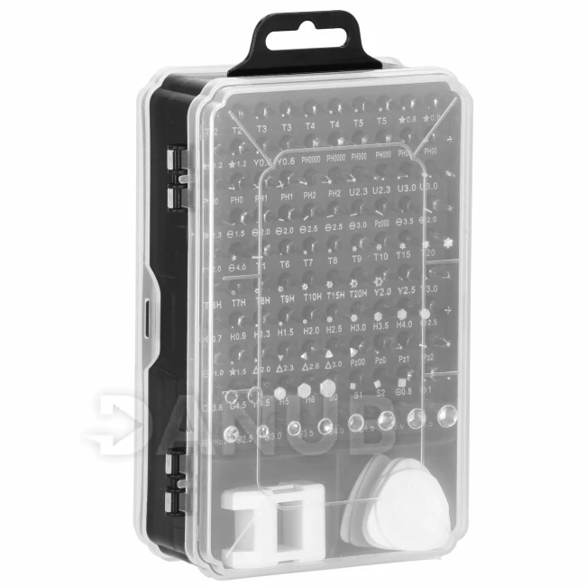 precíziós csavarhúzó készlet, 117 db, acél/műanyag, fekete