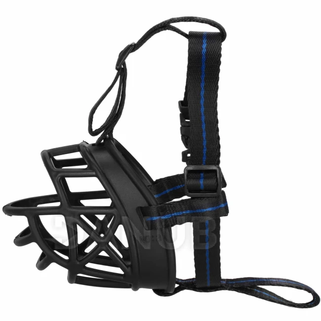 Szájkosár kutyának, M méret, állítható fekete és kék pántokkal