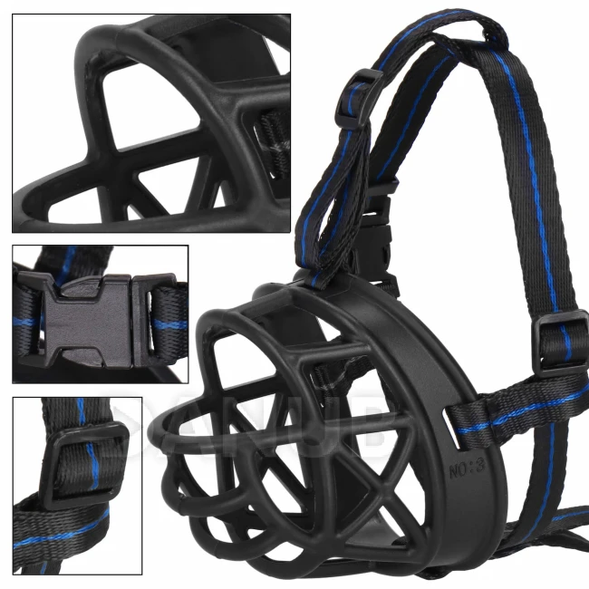 Szájkosár kutyának, XL méret, állítható fekete és kék pántokkal