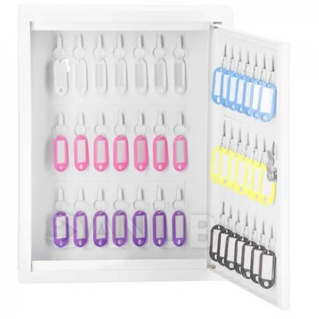 Szekrény 42 kulcshoz + kulcstartók - fém - fehér