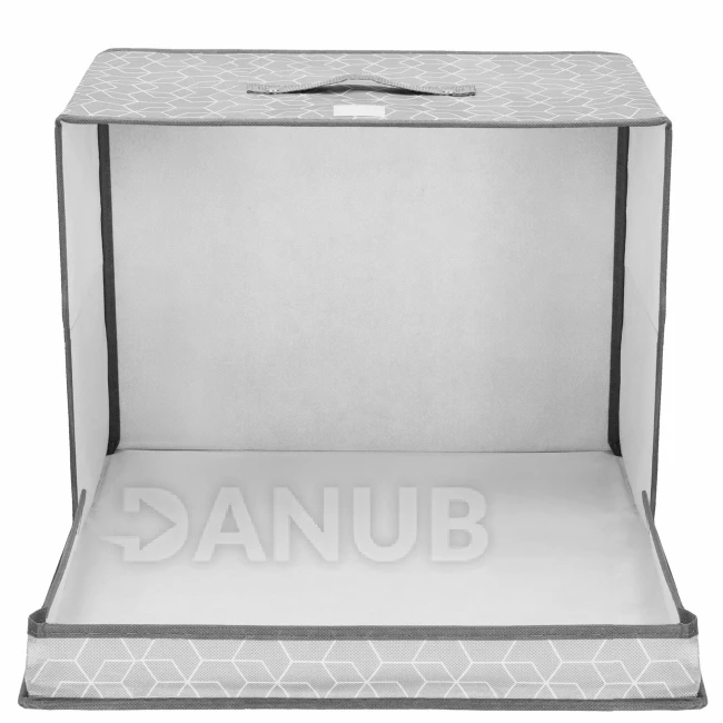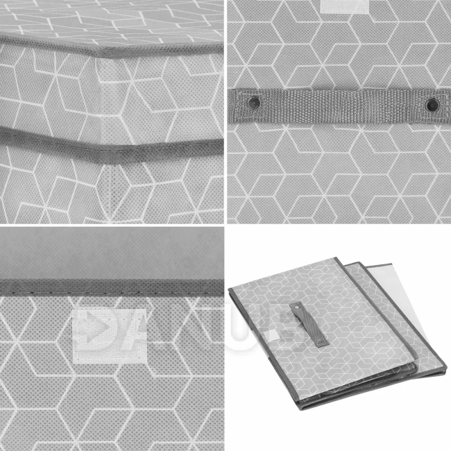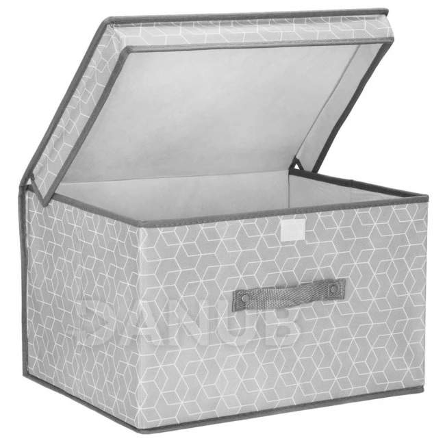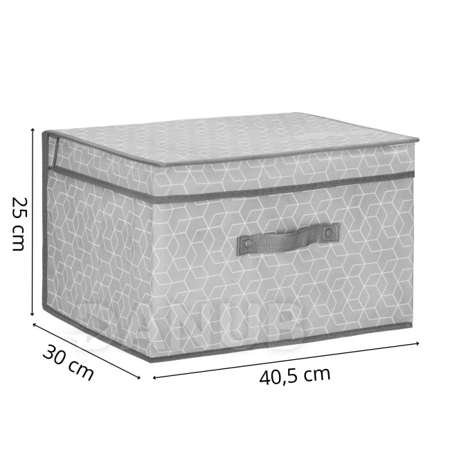 Tárolódoboz fedéllel - 25x40x30cm - hatszögek szürke alapon