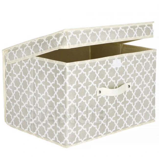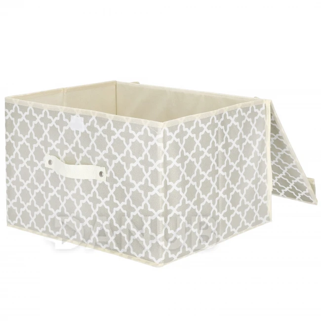 Tárolódoboz fedéllel - 25x40x30cm - marokkói lóhere bézs alapon