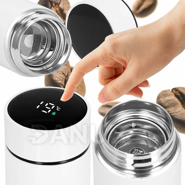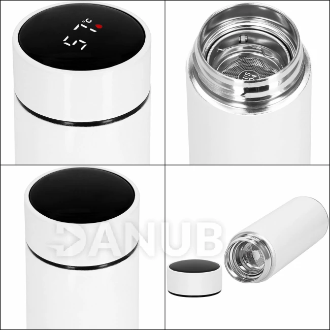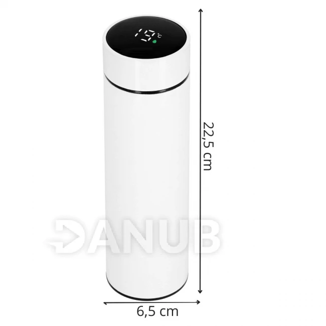 Termosz hőmérséklet kijelzővel - rozsdamentes acél - 500 ml - fehér