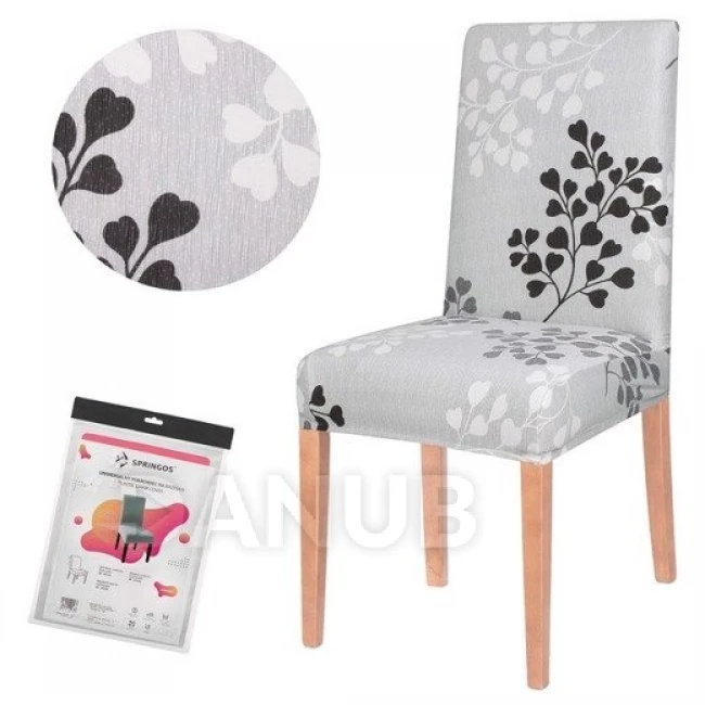 SPRINGOS Univerzális székhuzat - szürke-fekete levelek