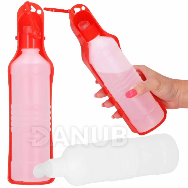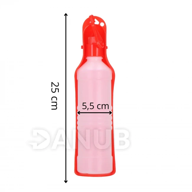 Vizes palack kutyáknak és macskáknak itatóval - 250 ml - piros