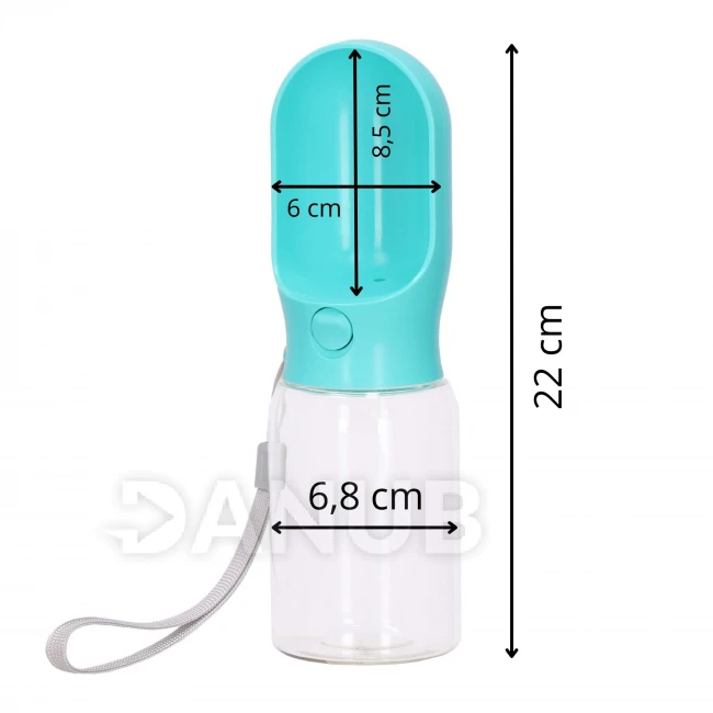 Vizes palack kutyáknak és macskáknak, itatóval és pórázzal - 340 ml