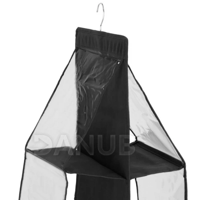 A Springos akasztós rendszerező remek választás a szekrénybelső átgondolt kialakításához. A termék egy kihúzható könyvespolc formájában készült, 6 polccal. A textilanyag, amelyből a szervező készült, kampóval felakasztható. Ez a funkció megkönnyíti a szervező más helyekre történő áthelyezését. A termék hosszúkás alakú. A szürke szín egy univerzális alap, amely nem feltűnő, ugyanakkor tökéletesen betölti szerepét. A terméknek köszönhetően rendet tartunk a szekrényben, és a hely felét megtakarítjuk