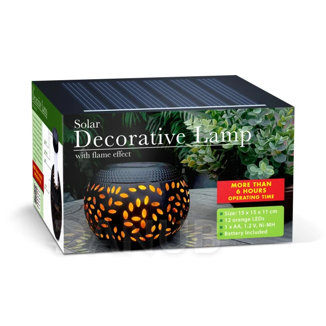 Szolár dekor lámpa - lángeffekttel - 12 sárga LED - 15 x 15 x 11 cm