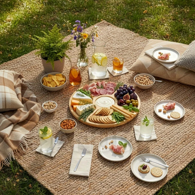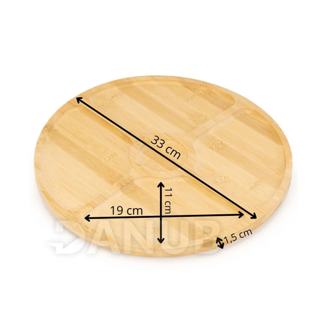 Tálalótálca frissítőhöz – forgatható – kerek – 33 cm – bambusz