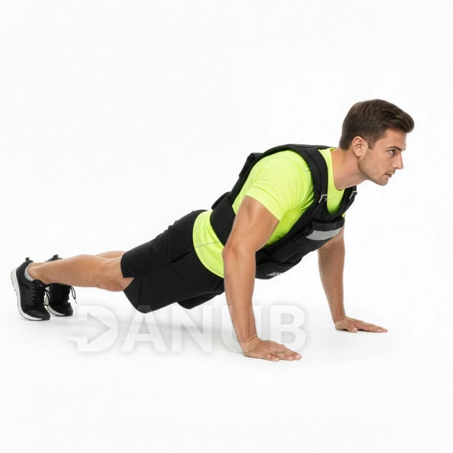- A vállnál a mellény hossza állítható, igény szerint szorosabbra vagy lazábbra állítható, az állítási tartomány kb. 6 cm