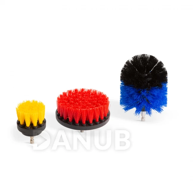Tisztítókefe-készlet , amely akkus csavarhúzóban vagy fúrógépben használható ( hatszögletű csavarral). Ideális lehet felnik, gumiabroncsok, üléshuzatok és gumi alkatrészek tisztítására. A különböző formájú és méretű kefékkel még a nehezen hozzáférhető területeket is könnyedén megtisztíthatja. A kefék még az erős szennyeződéseket is eltávolítják, de nem károsítják a felületet. Javasoljuk, hogy a gépet alacsony fordulatszámon használja. A kefék a háztartásban is használhatók, kiválóan eltávolítják a vízkő és a szennyeződéseket a különböző felületekről, mint például: csempe, szőnyeg, szövet.