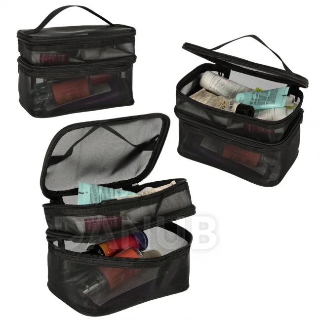 - Hálós anyagból készült, amely megkönnyíti a kozmetikumok keresését.