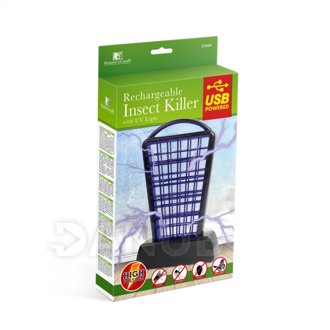 Dupla teljesítményű rovarcsapda. A kellemetlen csípő rovarokat, például a szúnyogokat és kisebb legyeket vonzza az ultraibolya fény. Útban a fényforrás felé belerepülnek az elektródába, és gyorsan, fájdalommentesen és higiénikusan elpusztítják őket. A csapda USB-kábellel vagy elemmel is használható. Ha nem áll rendelkezésre USB tápellátás , a készülék átvált akkumulátoros üzemmódra.
