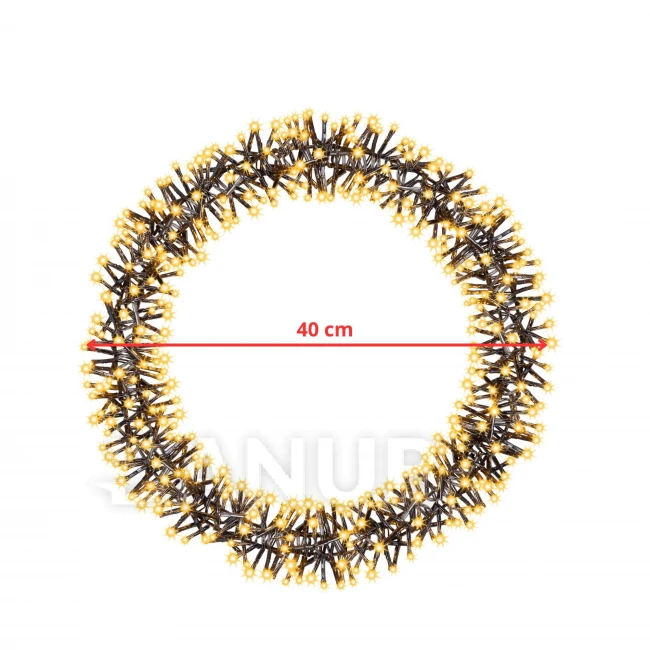 Karácsonyi világító koszorú ajtóra - 40 cm - 300 LED - Meleg fehér