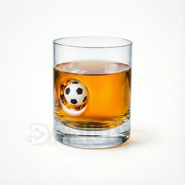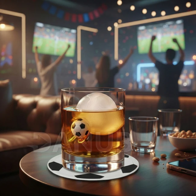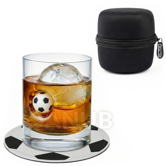 Whiskys pohár futball labdával és labda alakú alátéttel